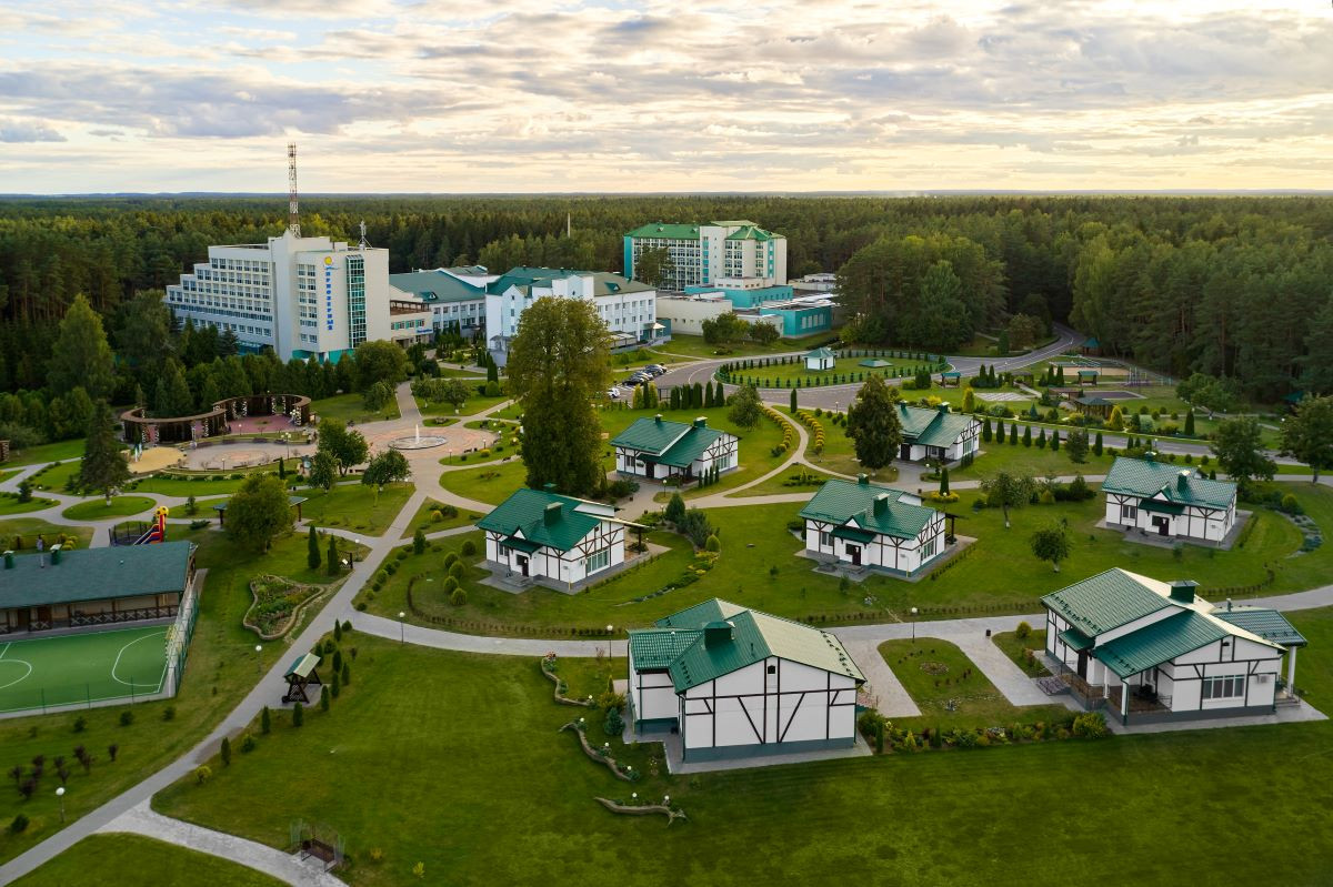 Территория санатория похожа на мини-город с двумя спальными корпусами, коттеджами, лесными домиками, лечебным корпусом, СПА-центром и многофункциональным павильоном.