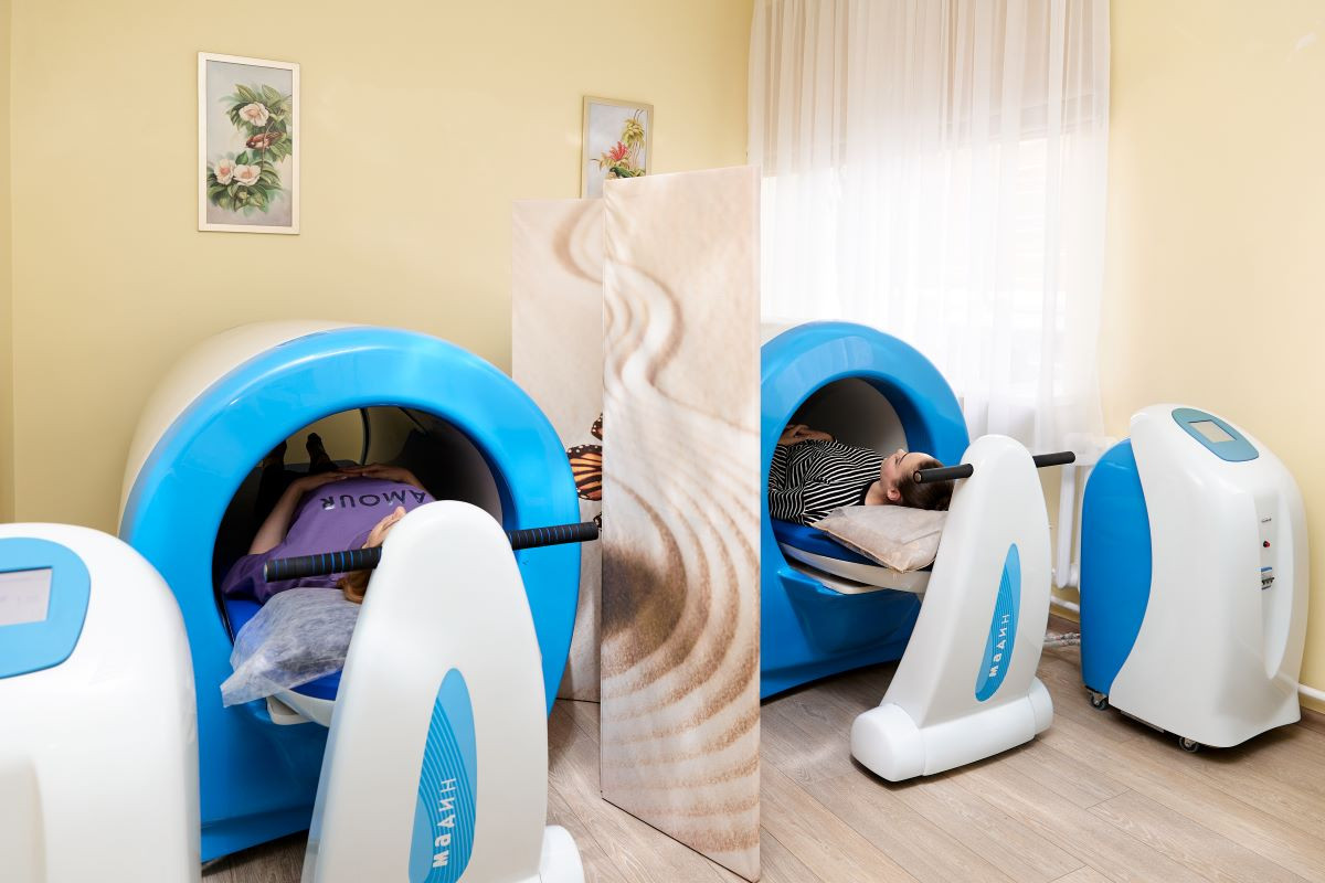 А также используются альтернативные методы лечения: ароматерапия, гирудотерапия (пунктурная), кедровая бочка, дорожка Кнейпа, соляная, градирня, фитотерапия, гипербарическая оксигенация в одноместной портативной камере О2 series Avatorika, диагностика нейро-мышечной системы на кинезитерапевтической установке Экзарта, внутримышечные и внутривенные инъекции.