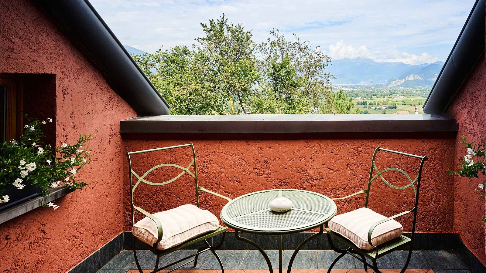 Номера от категории Супериор до именных Сьютов располагают: кондиционером, телевизором, телефоном, мини-баром, сейфом, ванной комнатой (ванна/ душ, фен, халат, тапочки), имеют Wi-Fi доступ в интернет. Есть номера с балконом с видом на озеро или виноградники. Ванные комнаты отделаны мрамором пастельных тонов, в некоторых есть ванна с гидромассажем. В уникальном номере для романтиков Cabriolet Suite одним нажатием кнопки в потолке спальни открывается люк с видом на звездное небо.