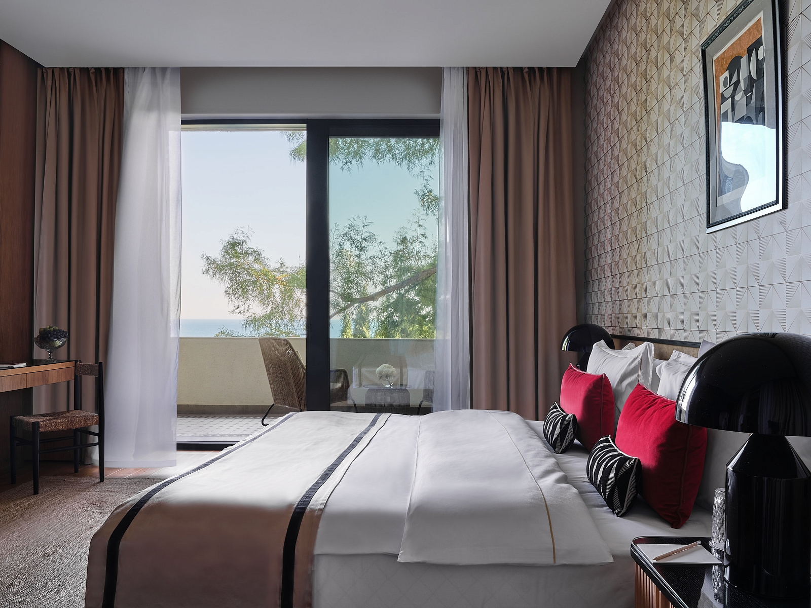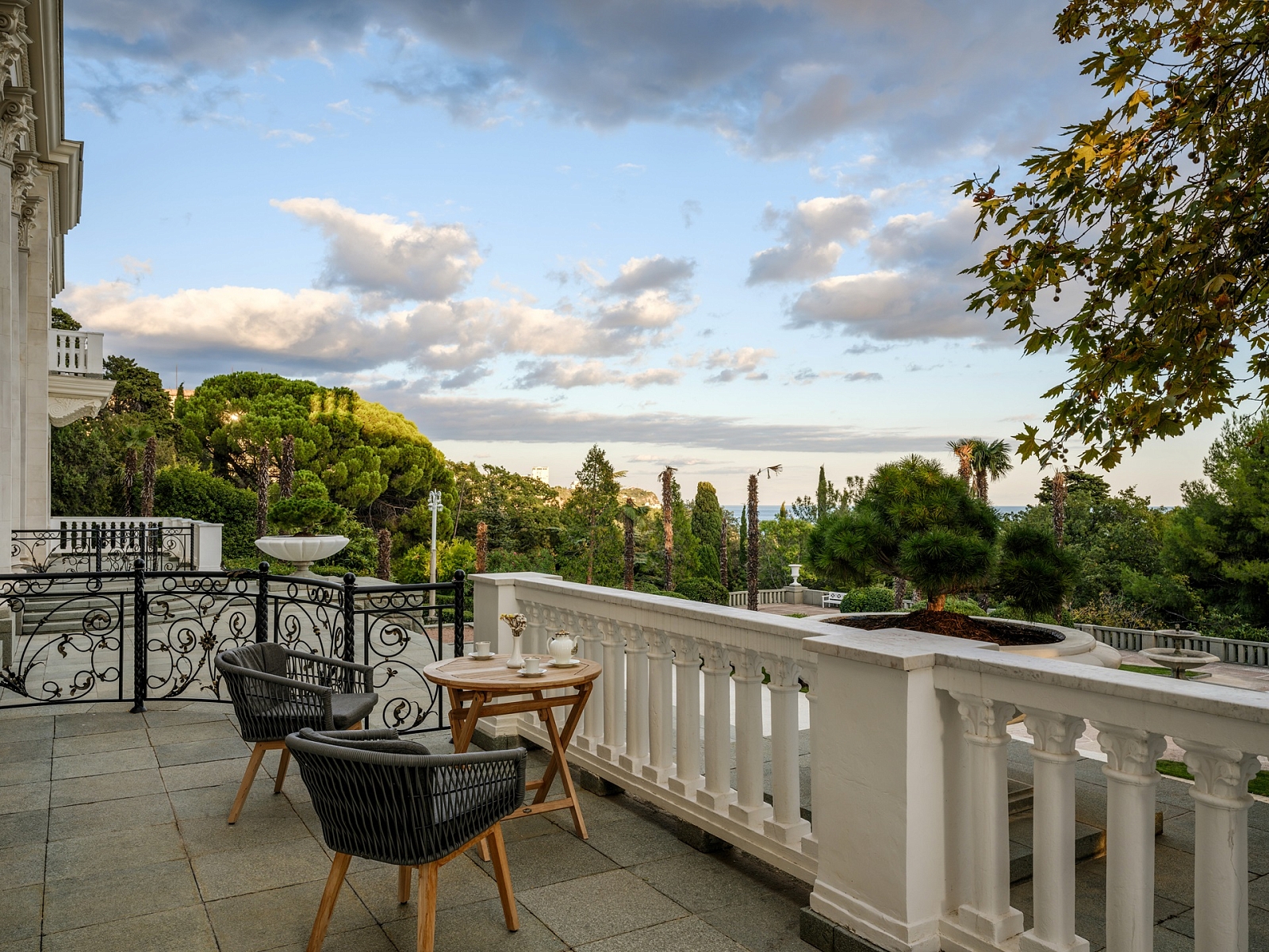 Трехкомнатный Сют «Рахманинов» площадью 100 кв.м имеет две оборудованные террасы с видом на море и один балкон, а в королевской спальне стоит собственный рояль.