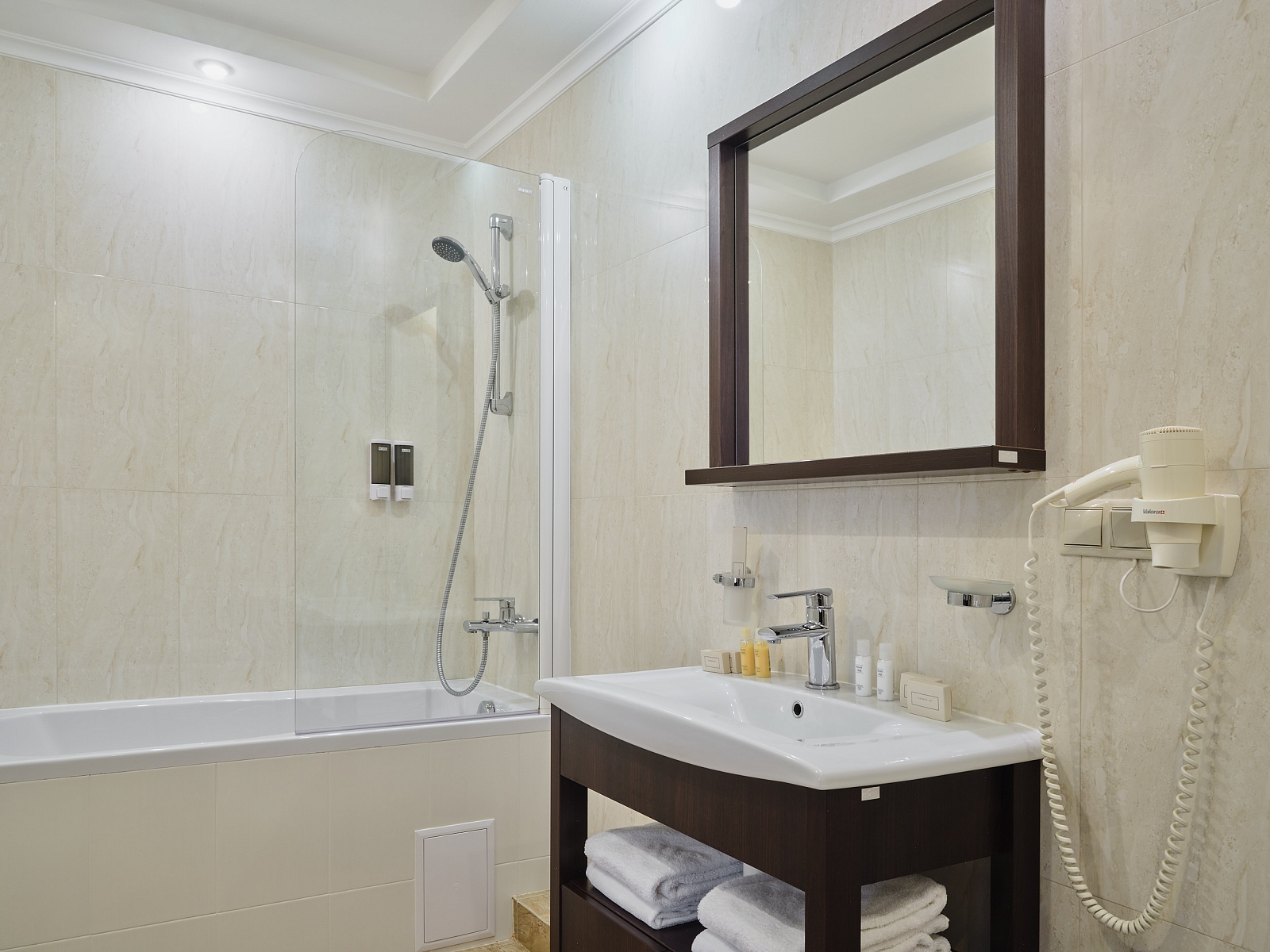 На территории комплекса расположены три жилых корпуса на 37 номеров от категории Комфорт до трехкомнатных апартаментов. В Центральном четырехэтажном корпусе кроме номеров находятся тренажерный зал, массажный кабинет, кафе и детская комната. Второй корпус - трехэтажный, очень тихий с панорамной крышей. Третий корпус - также трёхэтажный. Здесь располагаются номера, крытый бассейн, солярий, кафе, панорамная крыша.