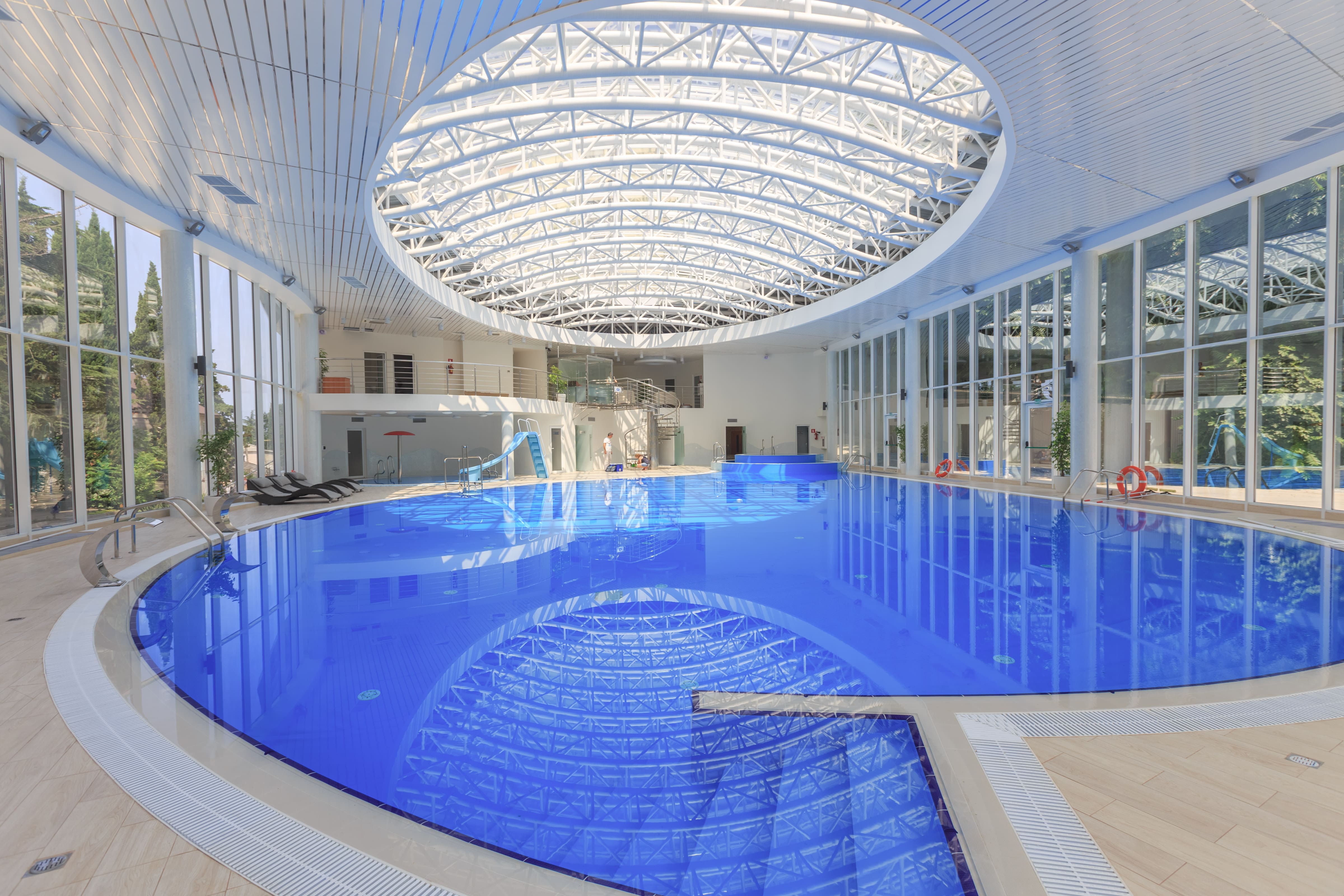 Водно-оздоровительный комплекс санатория располагает крытым бассейном (282 кв. м) с водопадом, гидромассажем и противотоком; детским бассейном, дорожкой Кнейпа (двумя контрастными бассейнами), аромасауной Кедровая бочка, инфракрасной сауной, хамамом, финской сауной и косметологическим кабинетом.