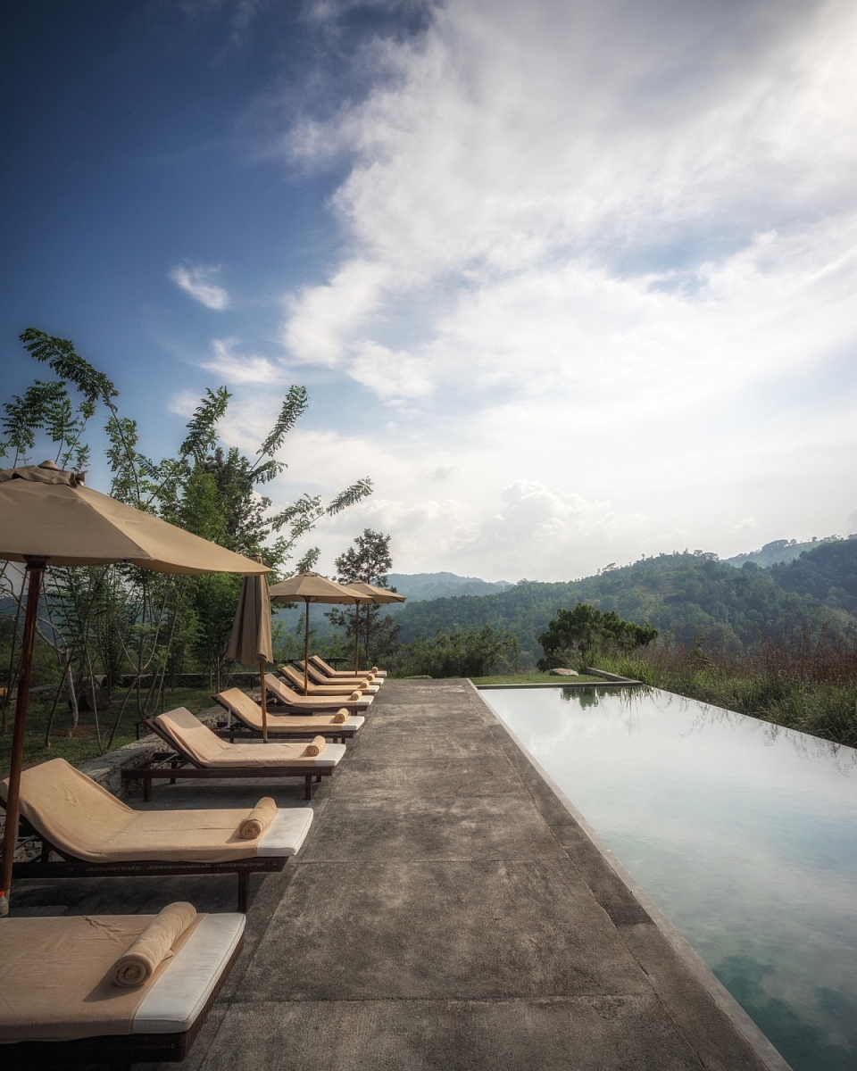 Santani предлагает 20 уединенных шале, оформленных в минималистичном стиле. Из 16 шале с видом на горы и 4 с видом на сад открываются панорамные виды на долины и горные хребты. Номера площадью 46 кв.метров оснащены панорамными окнами, стирающими границу между интерьером и природой, частными балконами, тропическим душем и всем необходимым для комфорта. Телевизоры намеренно отсутствуют для поддержания атмосферы уединения.